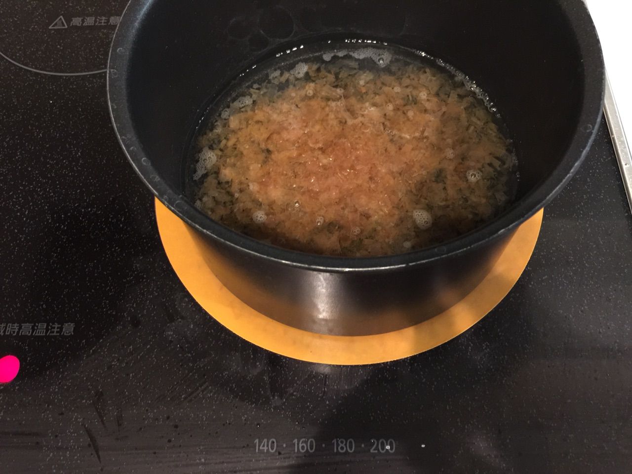 5.残りの出汁を中火にして、沸騰させたら、鰹節を入れる