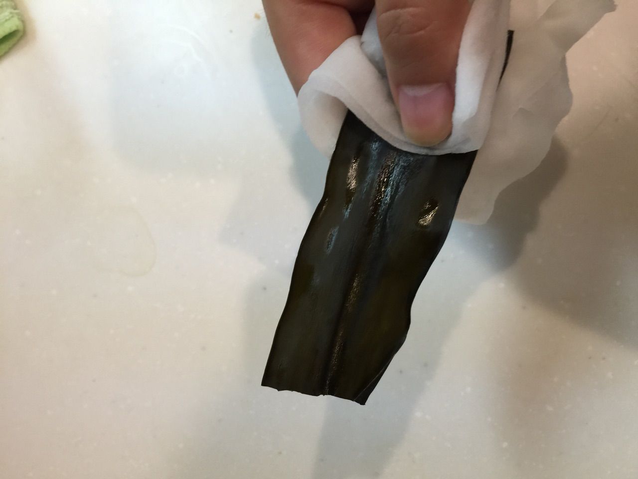 1.昆布を濡れたフキンで軽く拭いて湿らす