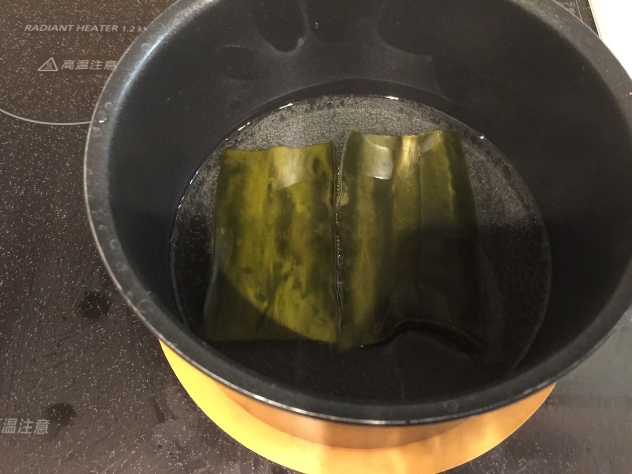 2.鍋に水と昆布を入れて30分ぐらい、柔らかくなるまで浸す