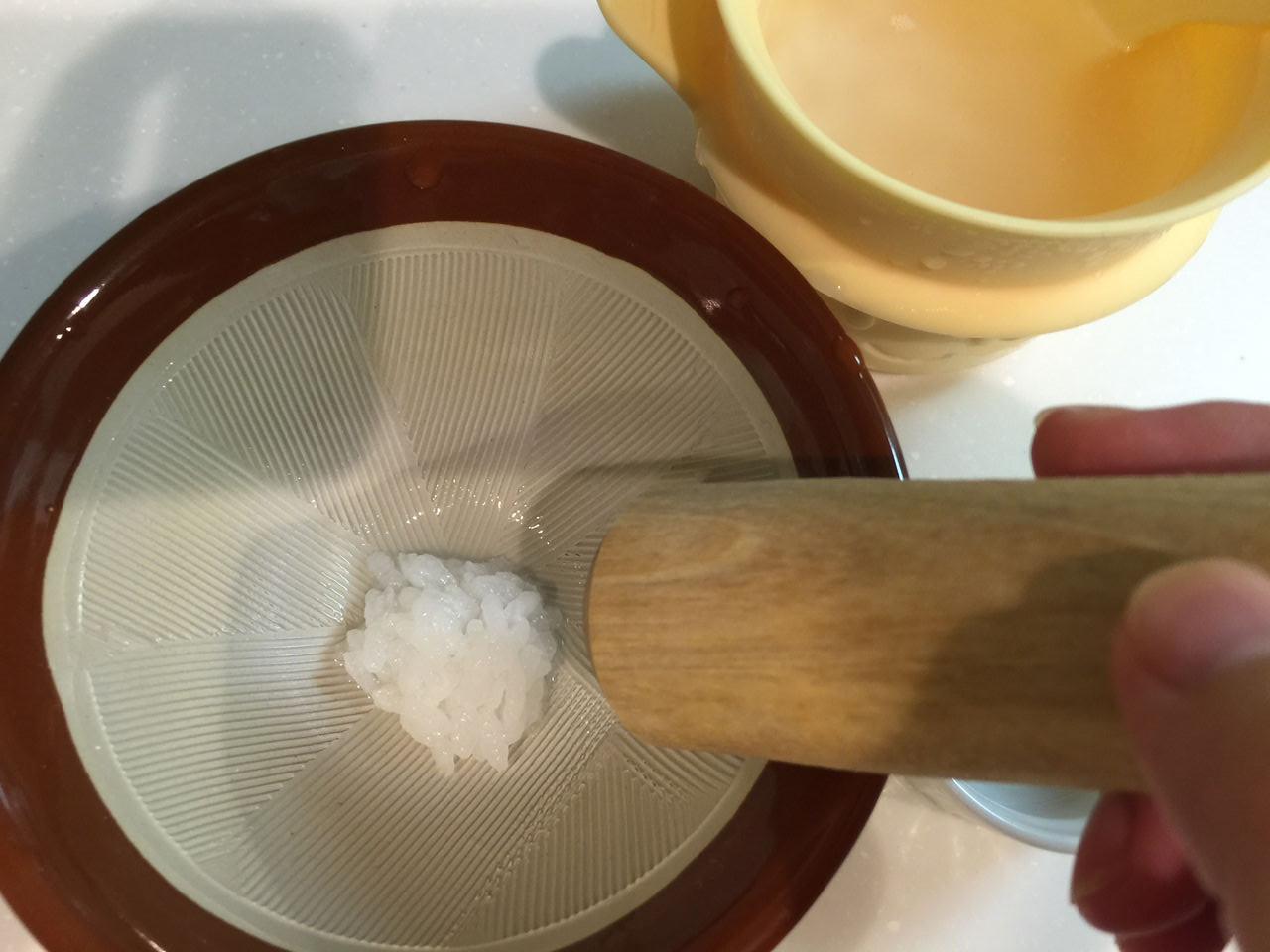 4、すり鉢で、つぶつぶがなくなる程度にすり潰す!