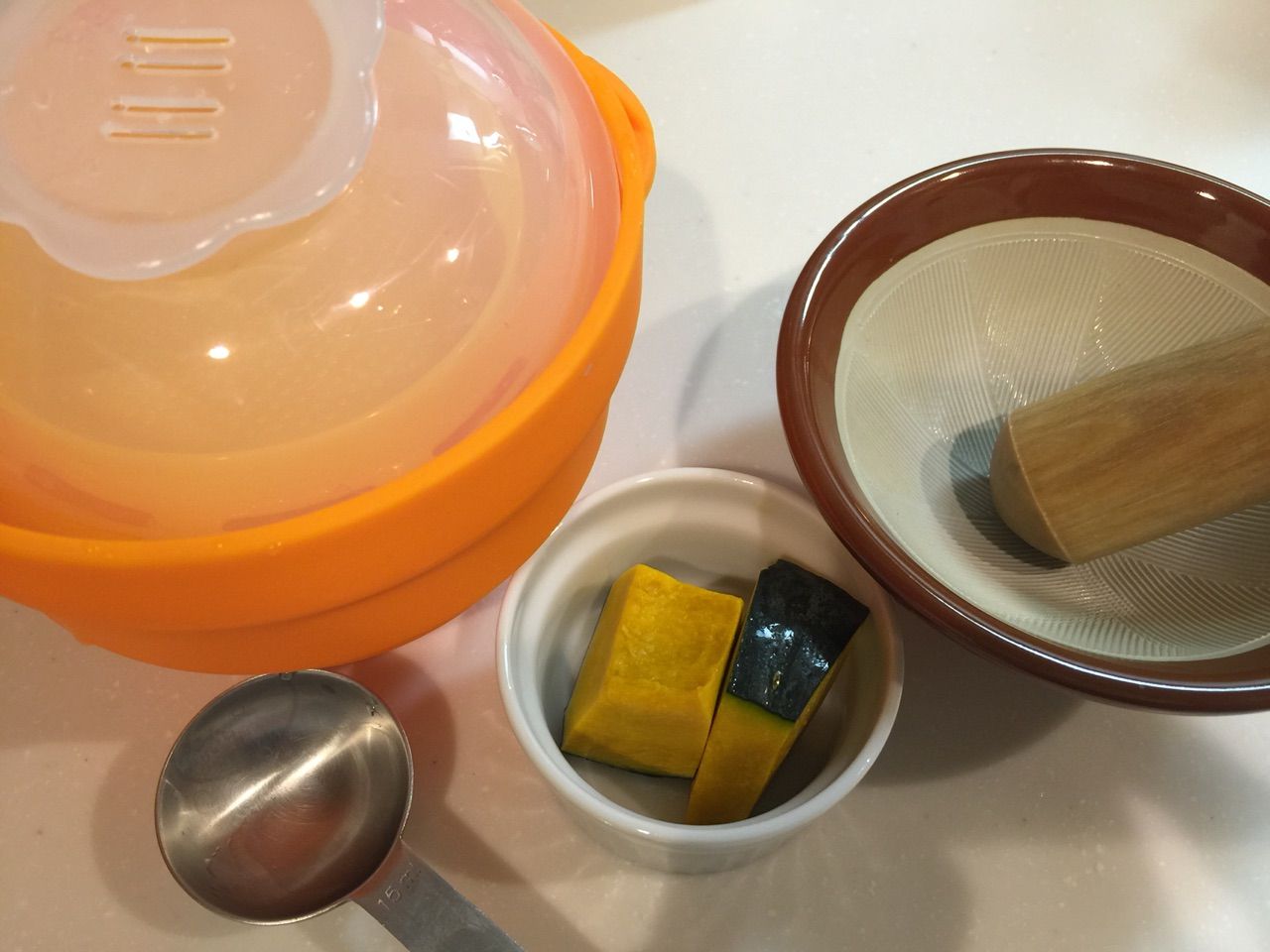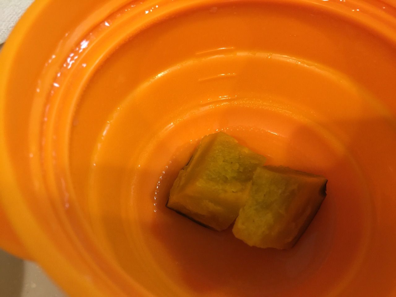 今日は離乳食シリコンスチーマーを使ってかぼちゃのペーストにチャレンジ!